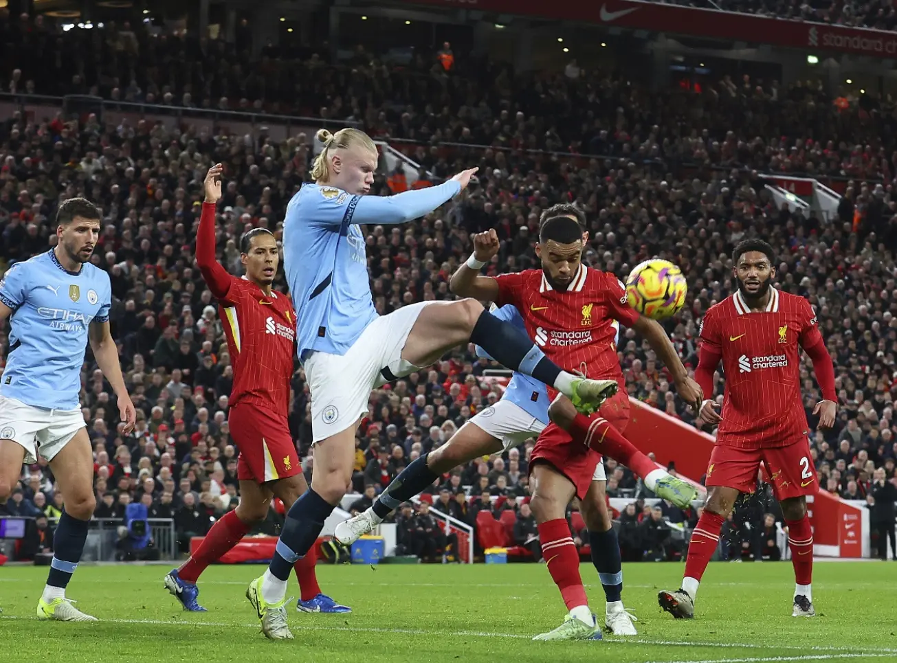 双方本赛季在英超赛场的交手已经结束,两次交手均以曼城胜出。联赛首回合在伊蒂哈德球场,曼城3-0轻取利物浦,次回合在安菲尔德,曼城凭借伤停补时阶段哈兰德的制胜点球,曼城2-1再次击败利物浦,这也是曼城近十年来首次在联赛双杀利物浦。