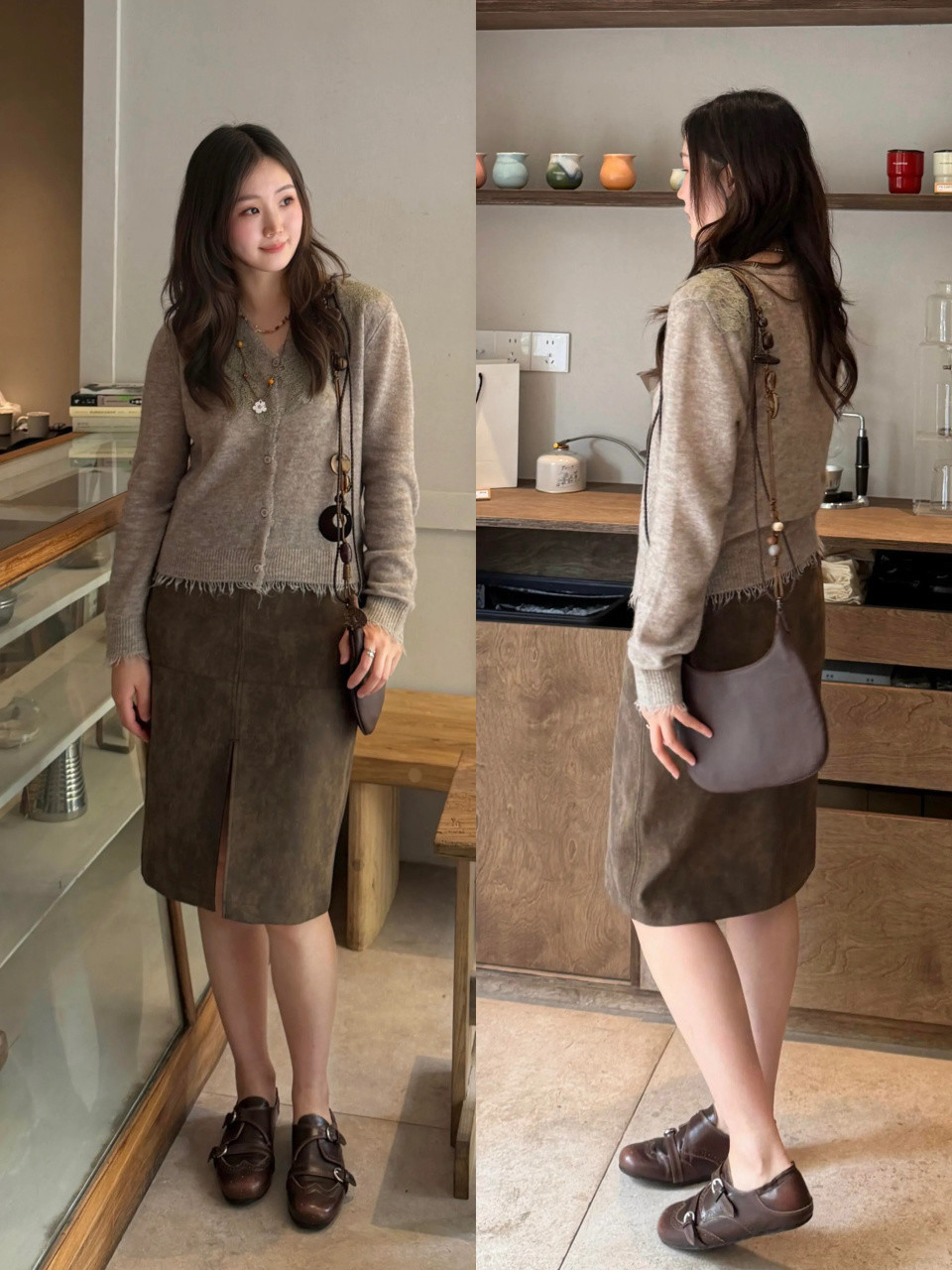 若是微胖女性想让自己的身材变得更流畅,确实可以选择一件软糯亲肤的针织开衫,配上一条直筒开叉半裙,脚踩一双皮鞋,这样的打扮显得很精致温柔,又能让身材线条变得比较流畅。